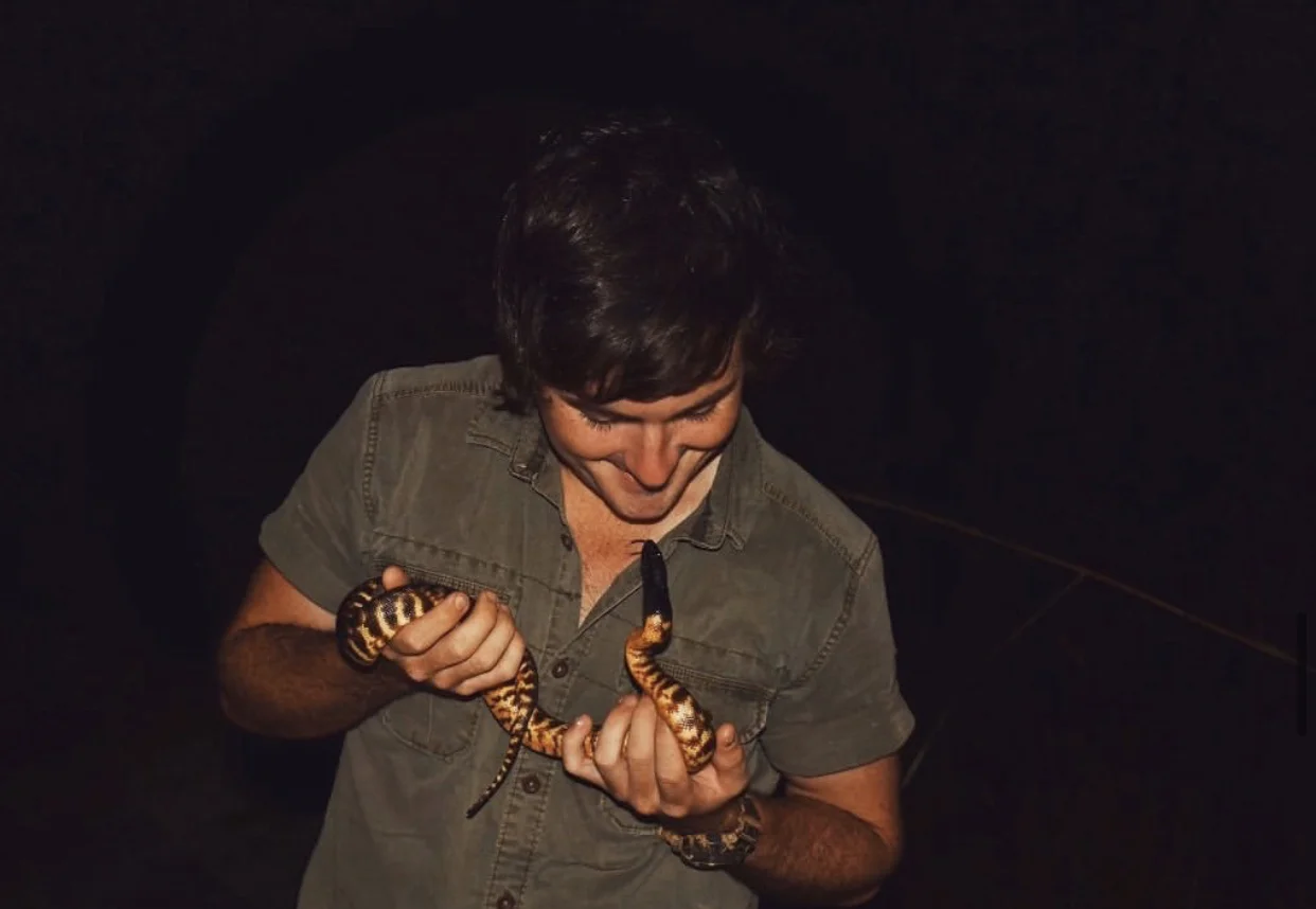 Wildlife Expert Brandon Gifford from the Australian Reptile Park with a Death Adder.