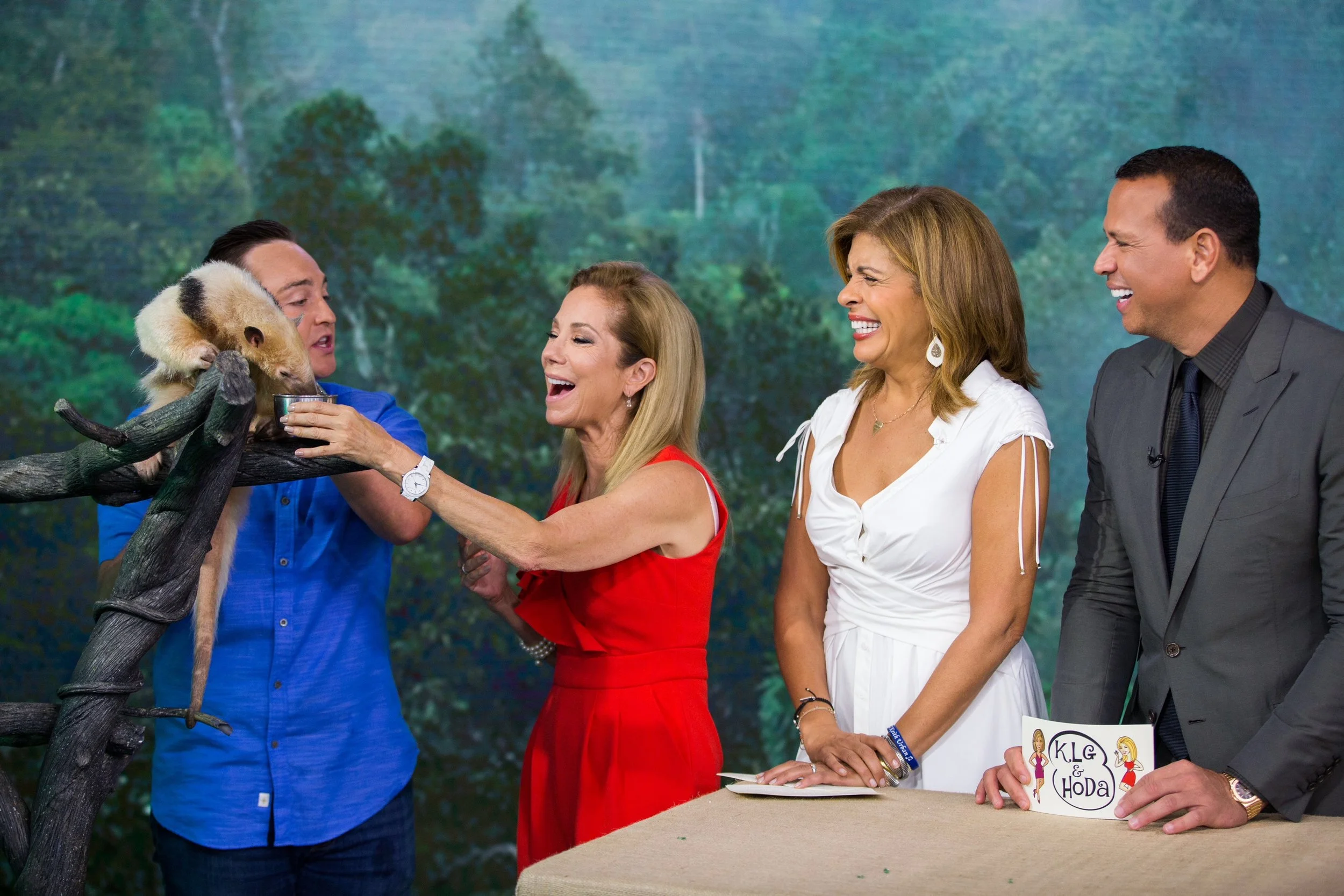 Kathie Lee feeding Gus the Tamandua. Photo Courtesy Nathan Congleton, Today Show Photographer.